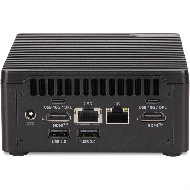 Hinten: DC-in 2x HDMI 2.1 TMDS, 2x USB 4 Gen 3x2 Type-C (DP Alt mode) 2x USB 2.0, 2x LAN RJ-45 (2.5 GbE/1.0GbE) |